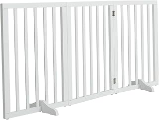PawHut Freestanding Pet Gate Wooden Dog Gate with Support Feet Foldable Pet Fenc..