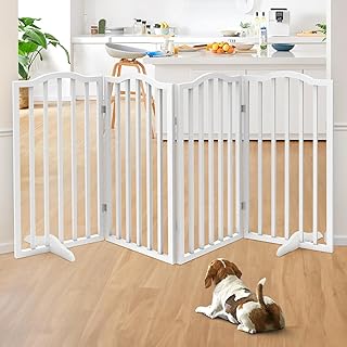 Yaheetech Freestanding Pet Gate Indoor 4-Panel Wooden Stair Gate for Small and M..